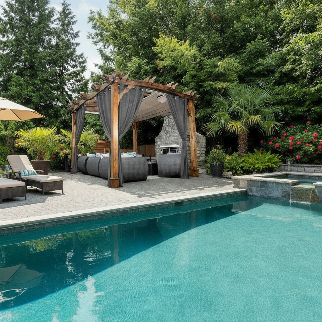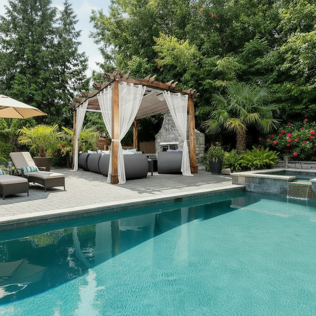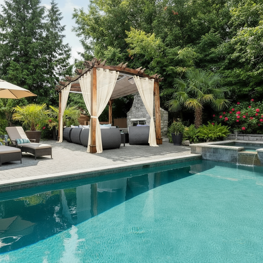 - Poolside lounges, patios & pergolas