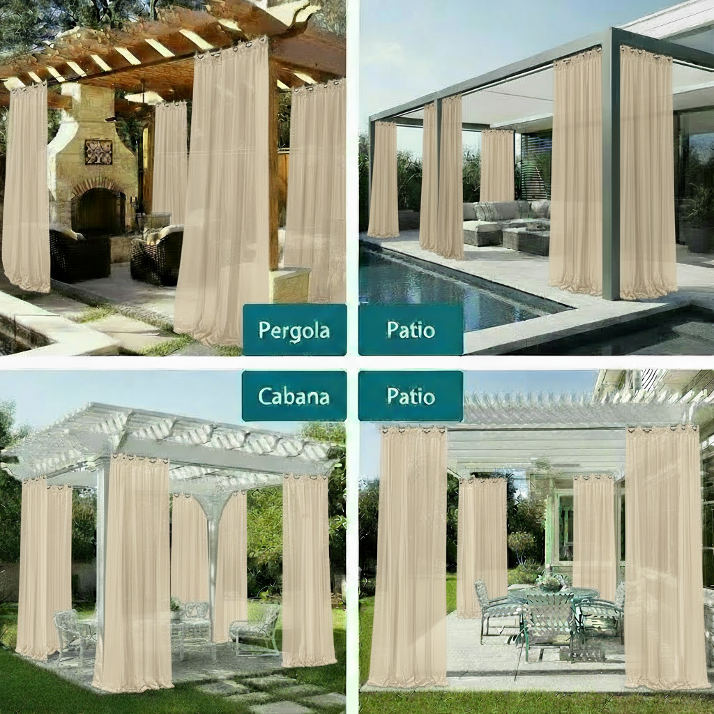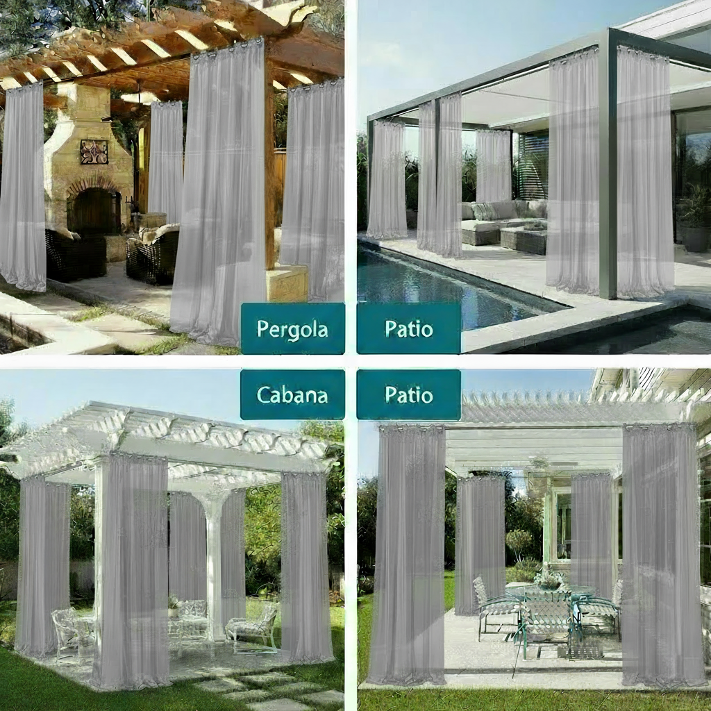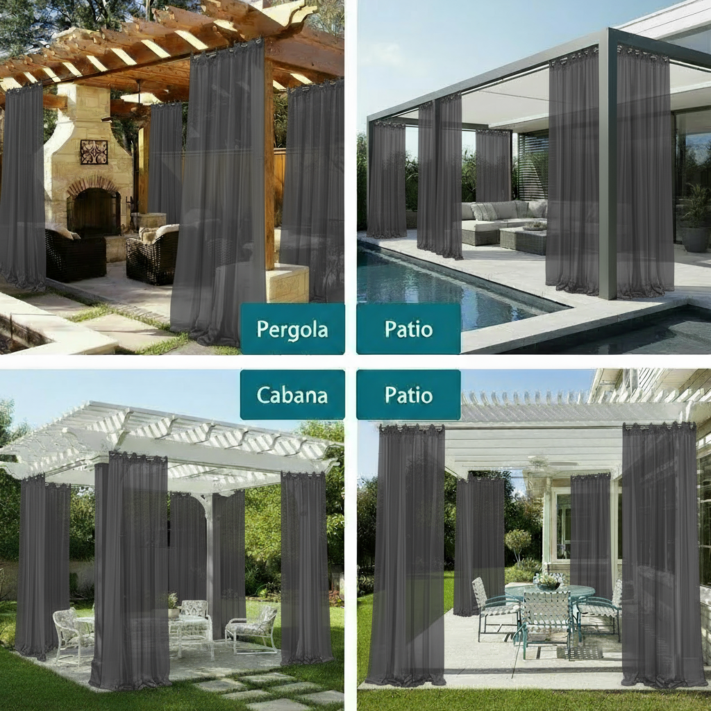 Lightweight and designed to move beautifully with the breeze, these sheers create a calming, airy atmosphere while enhancing the look of any structure — from modern living rooms to resort-style pergolas.