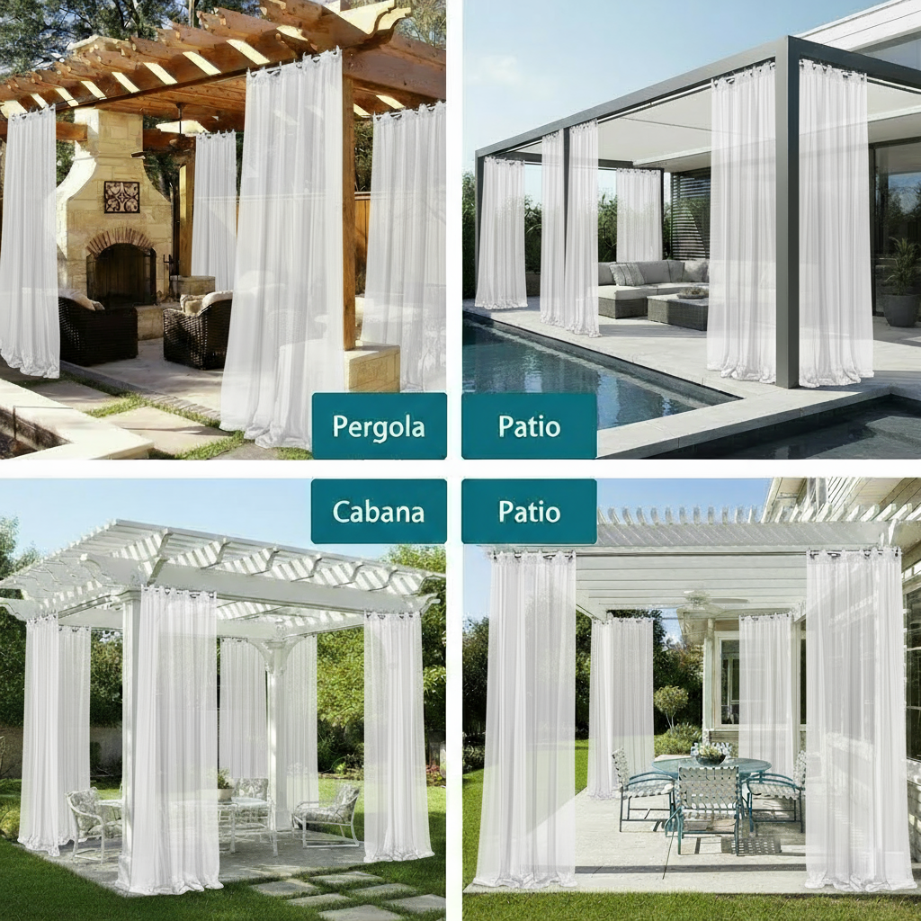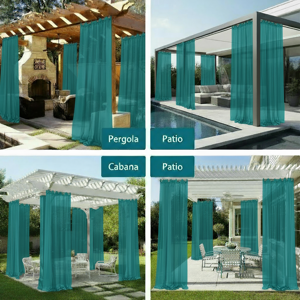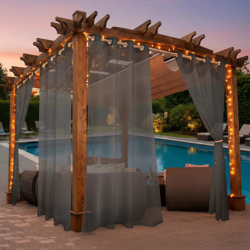 Lightweight and designed to move beautifully with the breeze, these sheers create a calming, airy atmosphere while enhancing the look of any structure — from modern living rooms to resort-style pergolas.